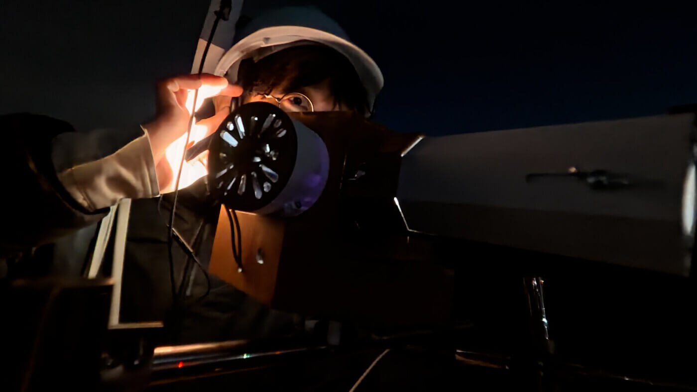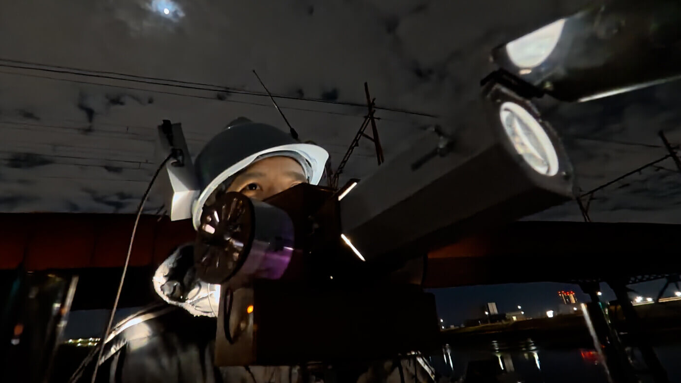 Appeartusは、小林がこれまで制作してきた、唇の像を投影する装置群と映像のシリーズです。同作において、小林は、自作の自転車型装置でのサイクリングを通じて、走行中に発した言葉から詩を作る「ポエトリー・ライディング」を実践してきました。本作(#1)では、大阪・大国町のベトナム系住民らが働く自転車屋「XE ĐẠP TRỢ LỰC OSAKA GIÁ RẺ」に焦点を当て、同店でのインタビューと、大阪・大和川でのポエトリー・ライディングを通じて、彼らの個人的な移動の言葉を収めます。そして、断片のような彼らの言葉から、<移動>を主題に一篇の詩を紡ぎます。