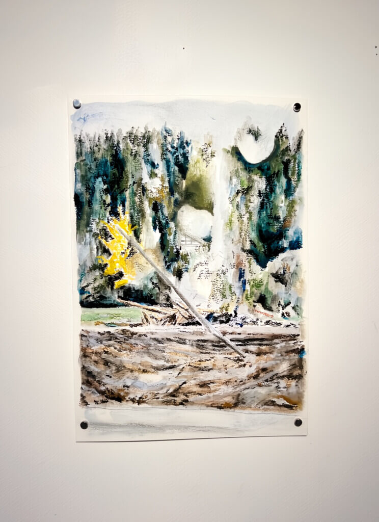 それはとても微細なシグナルで、気をつけなければ見落としてしまうかもしれない。画面に線や色を使って何かを描写をするのは普通の絵と同じだが、一般的に画家が、具象的な事物であれ抽象的な色や線であれ、描いた形象が発する意味や関係性を介して“絵画という存在”を生み出すのに対し、菊池にとっての絵とは、ひとりの人間が自然と相対し、観察し、意識として留める“行為の構造”そのものであるように思えた。